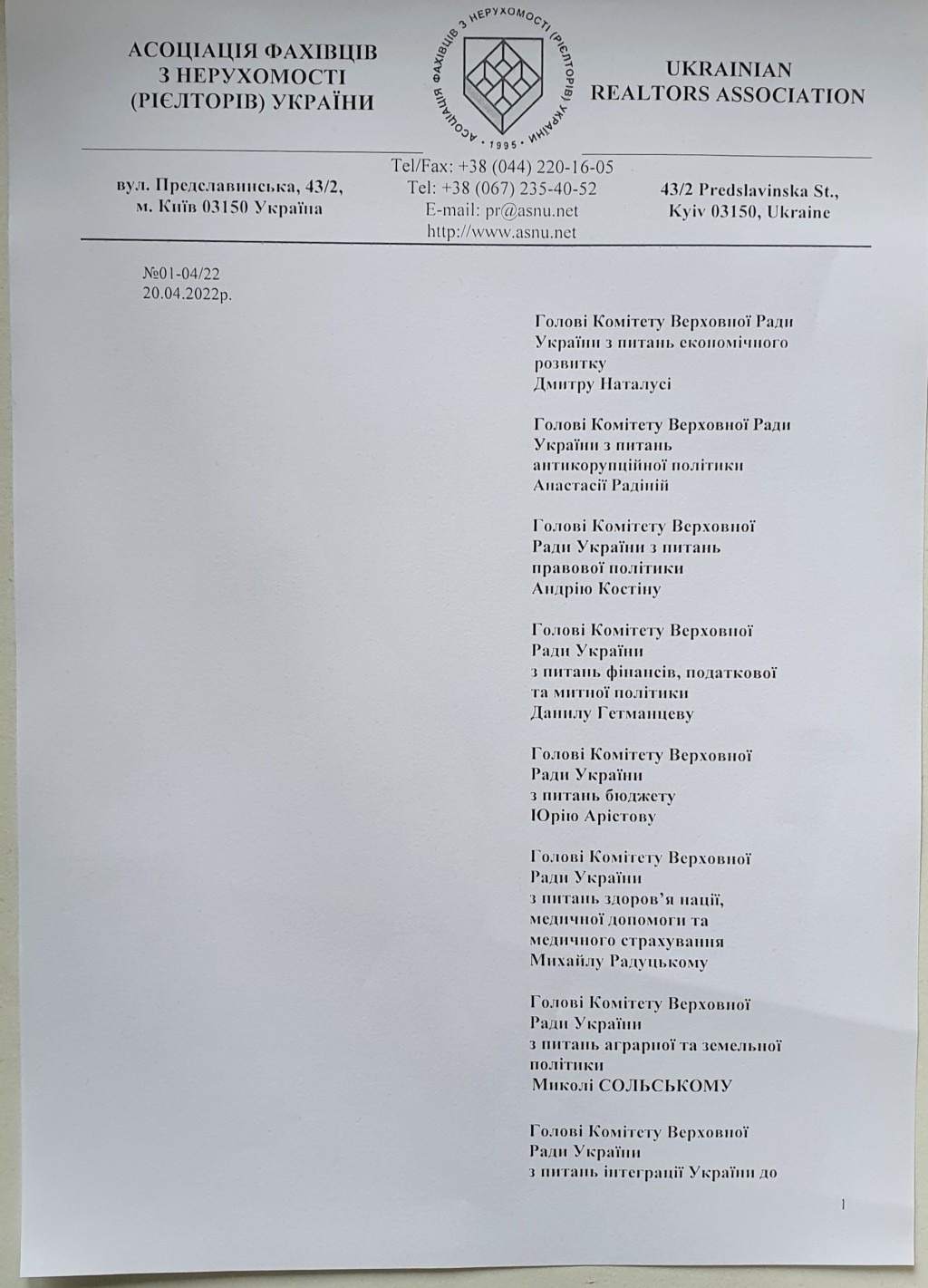 Асоціація фахівців з нерухомості (рієлторів) України звернулася до ВРУ з приводу законопроєкту 7174