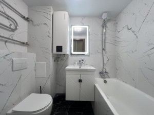 Квартира світла і затишна, двостороння. В кімнатах і коридорі оздоблення стін -шпалери, підлога – ламінат, в кухня фарбована, робоча стінка, підлога і в санвузлі плитка. Нові проводка, радіатори опалення, сантехніка, труби. Встановлені 2 кондіціонера, бойлер, броньовані двері, відеодомофон, лічильники води. Підключений Інтернет, є Wi-fi роутер.