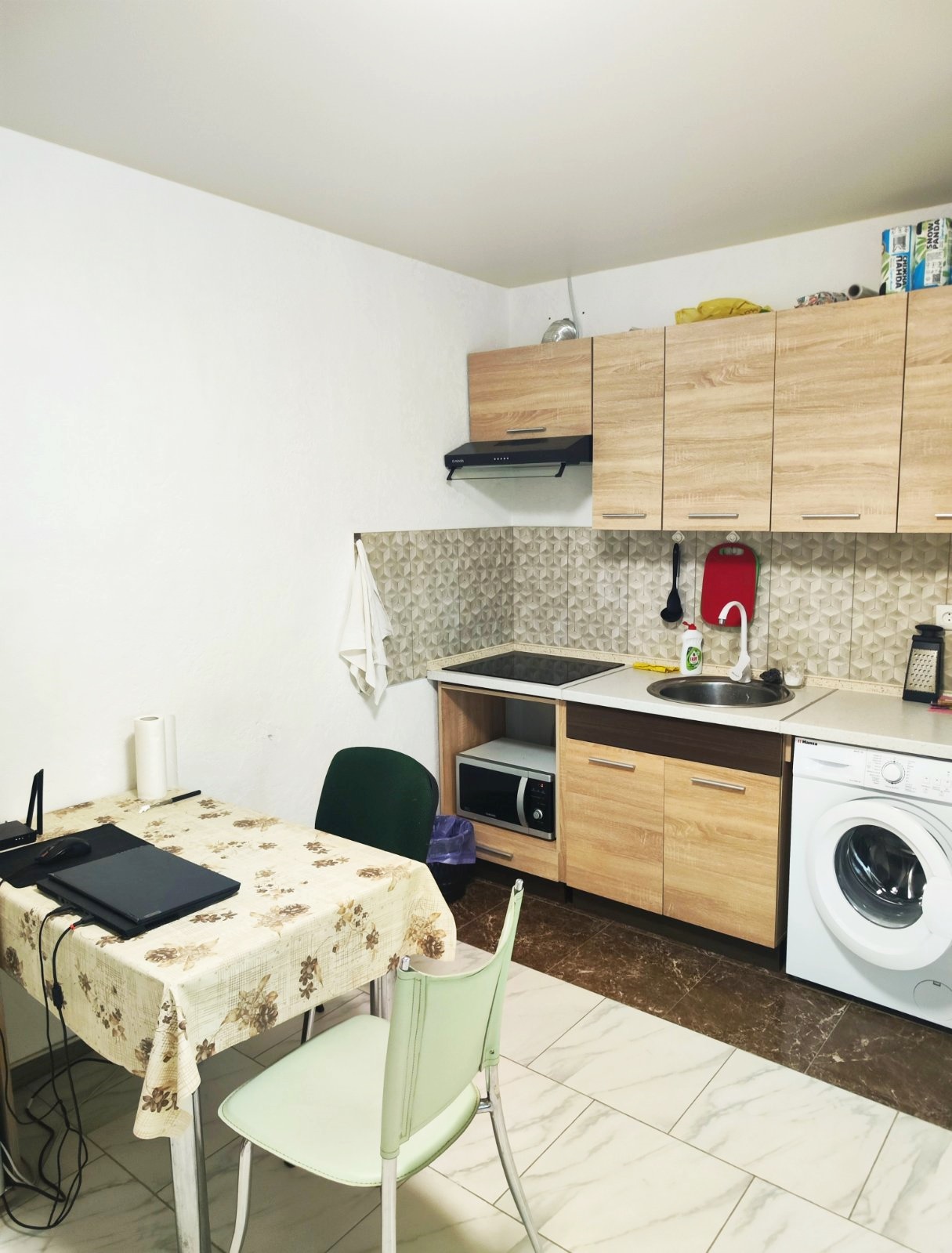 В будинку залишається все як на фото: шафа,2 спальне ліжко с ортопедичним матрацом,меблева стінка та техніка холодильник,пральна машина вбудовані кухонні меблі,гардеробна,електрична індукціонна плита,кондиционер іНВЕРТОР,ЯКИМ МОЖНА ОБОГРІВАТИ БУДИНОК ДО -20 МОРОЗУ.