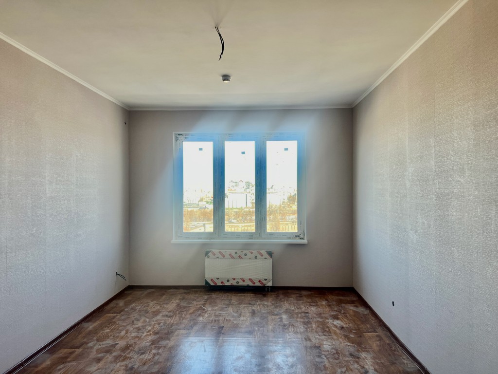 Будівельне оздоблення: - Двокамерні металопластикові вікна REHAU - Міжкімнатні двері з фурнітурою - Лінолеум, шпалери, плінтуси - Радіатори опалення з регуляторами - Повний комплект сантехніки у санвузлі - Централізоване гаряче водопостачання - Лічильники води, електроенергії та тепла - Металеві вхідні двері