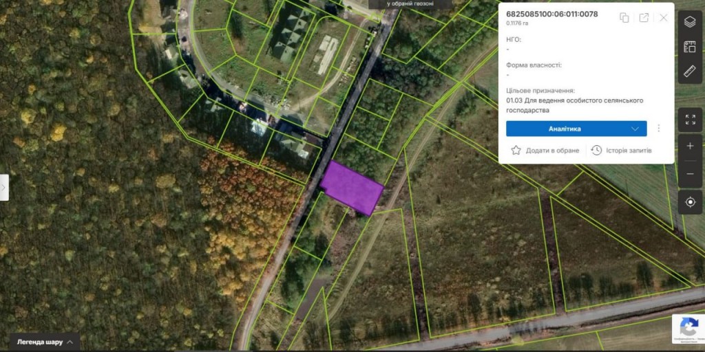 За бажання покупця надається юридичний супровід по зміні цільового призначення 02.01 «під забудову».