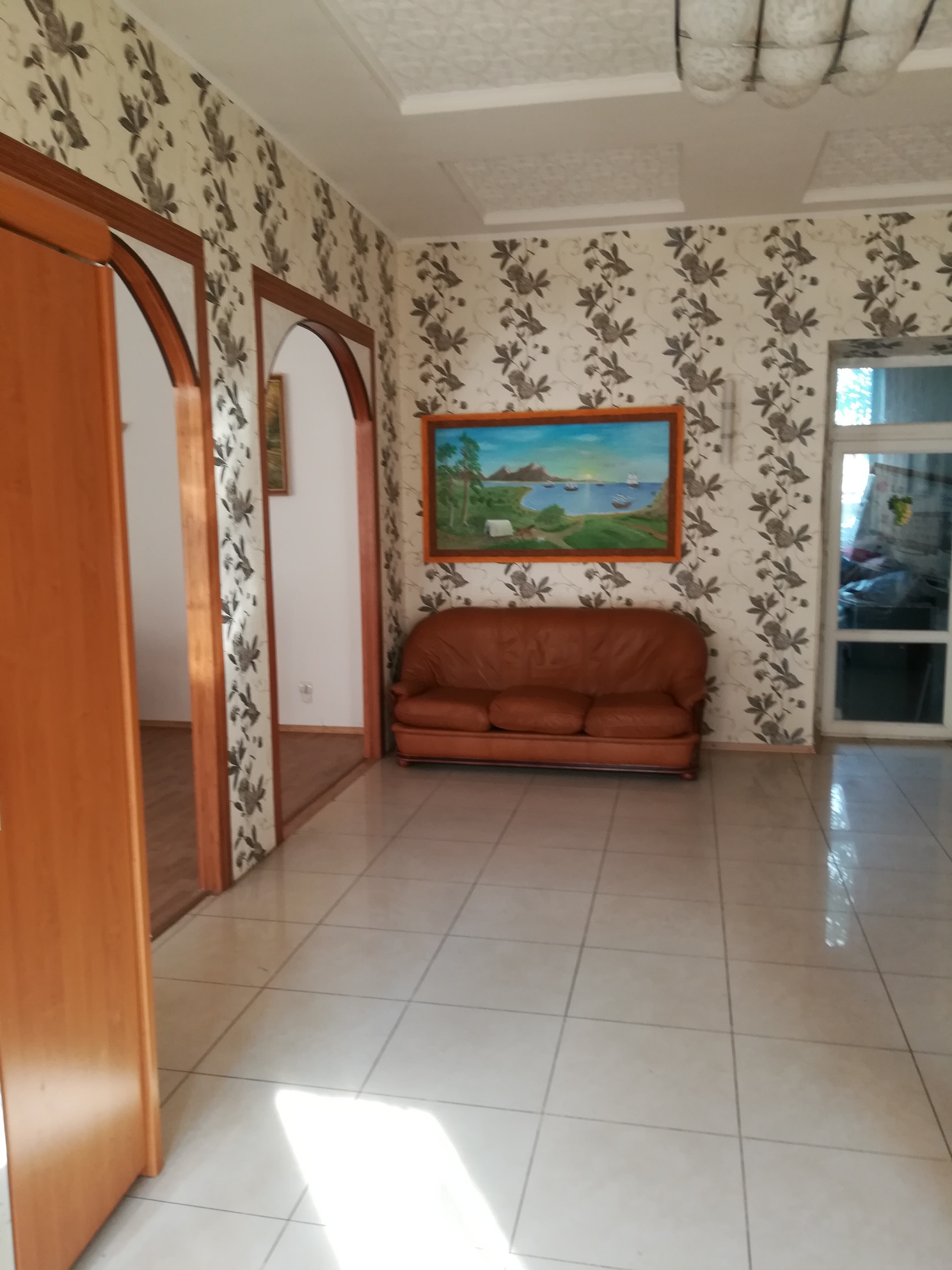 Кухня-студия. 4 с/у. в кафеле. Пол: плитка, ламинат.
