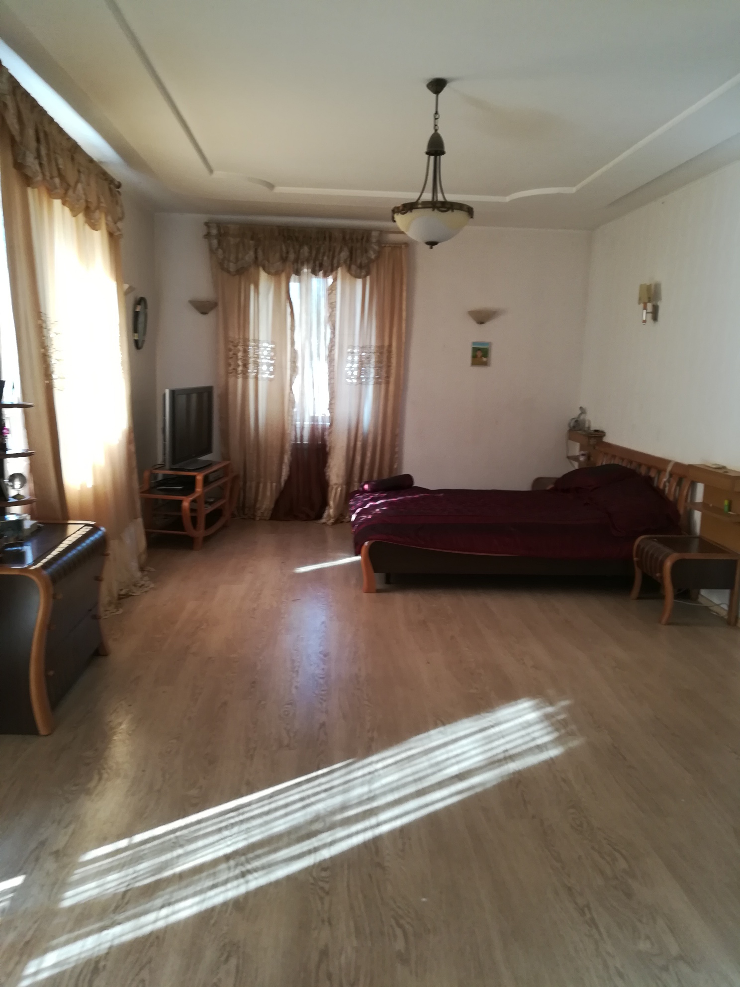 Высокие потолки. Есть два больших балкона. Крыша шифер.