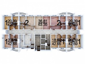 Общая площадь — 63,35м,