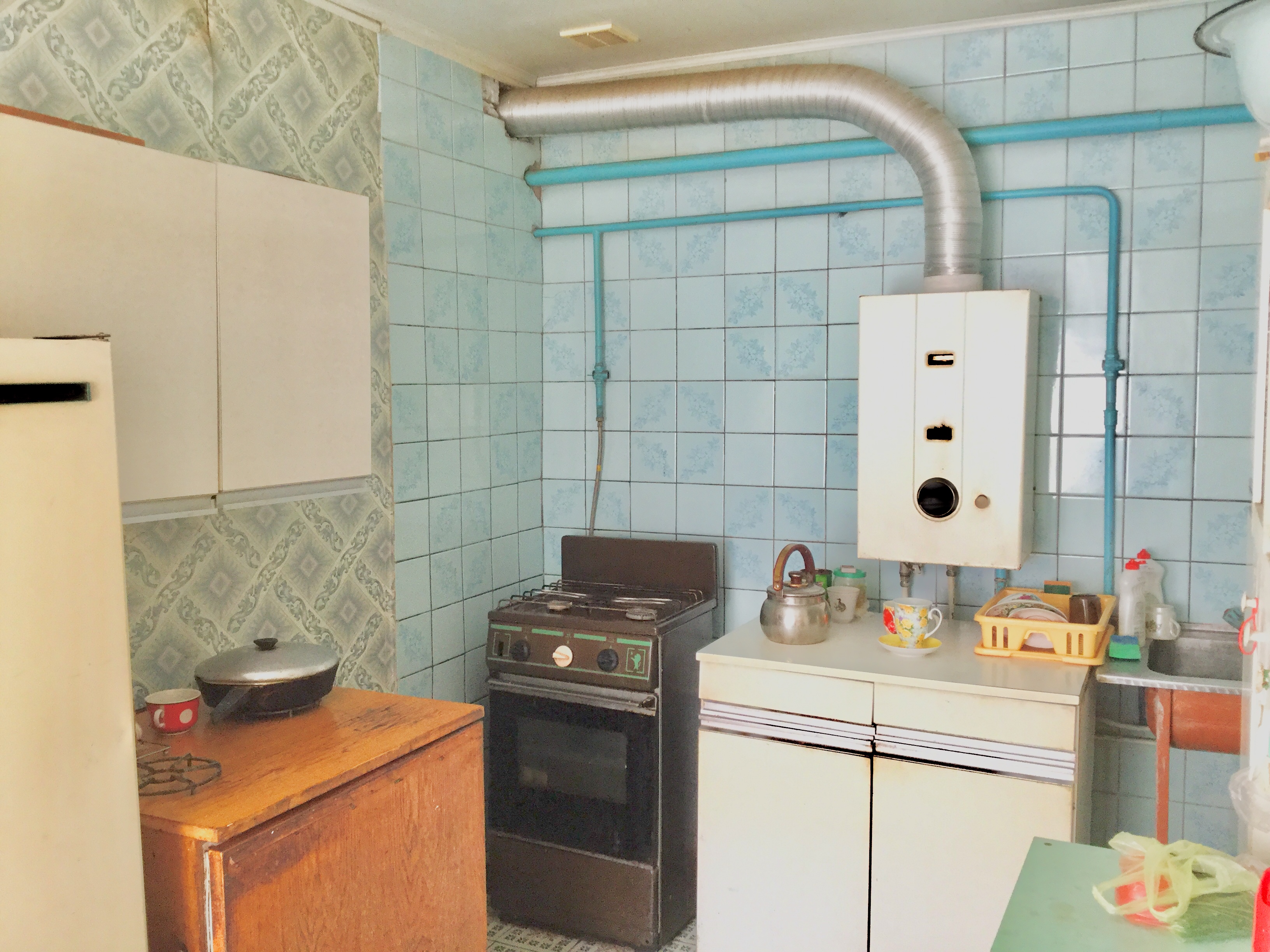 Полы цементные, покрытие: линолеум, плитка. Столярка в хорошем состоянии. На окнах решётки. Современная шпаклевка. Кондиционер.
