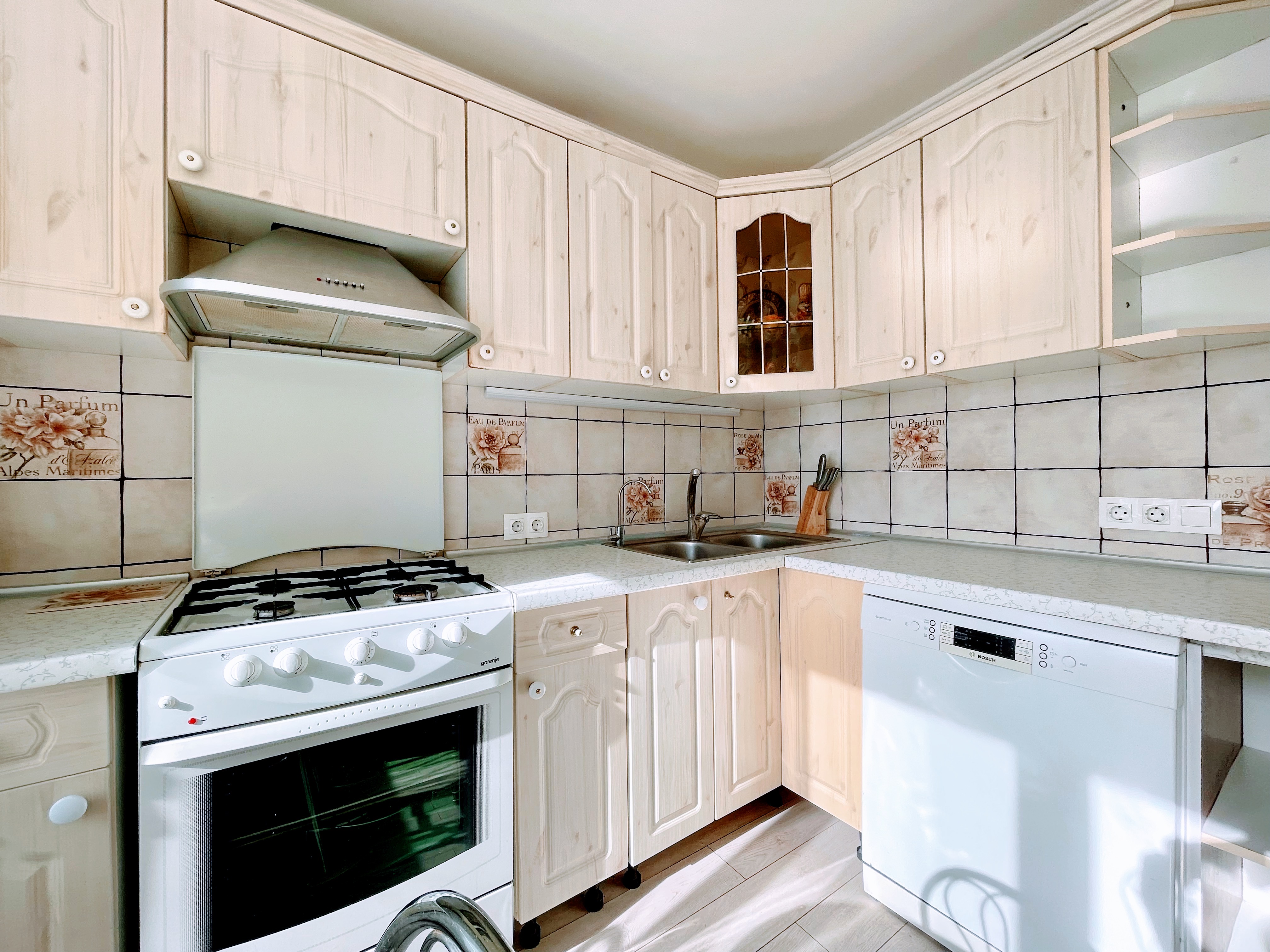 Меблирована. Две застекленные лоджии. На кухне встроенная мебель с бытовой техникой. Ремонт в светлых тонах. Установлен кондиционер. Санузел раздельный. В ванной бойлер на 80 л. Стиральная машина автомат.